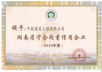 2020年6月,湖南省守合同重信用企業(yè)協(xié)會正式公示“2019年度湖南省守合同重信用企業(yè)”名單,我司榮獲“2019年度湖南省守合同重信用企業(yè)”稱號。